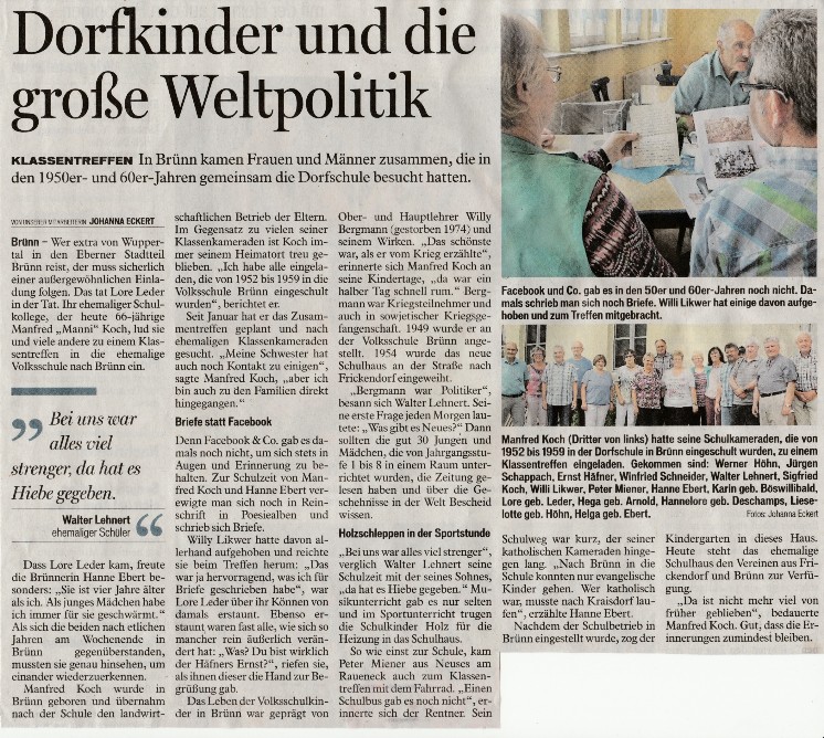 Klassentreffen der Volksschule Brünn ( Jahrgang 1952 - 1959 - Fränkischer Tag Bamberg)