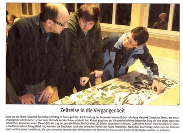 Unsere Heimatburg Raueneck wurde am Ende des 12. Jahrhunderts gebaut. Um 1200 wird erstmals ein edelfreies Geschlecht "de Ruheneke" genannt, das sich nach seiner Burg "Ruheneke" = bewaldetes Eck nannte . . . . . . . .